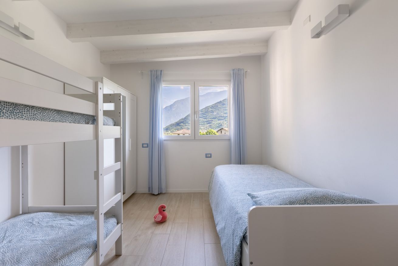 L’appartamento si trova a Linfano, zona verde tra Arco e Torbole, a circa 300 m dal lago. È nuovo, soleggiato, spazioso e con vista lago. La cucina è attrezzata e dotata di microonde, tostapane e bollitore. Dispone di una camera matrimoniale, una seconda con 2 letti per 3 posti e un divano letto in soggiorno. A disposizione parcheggio privato, deposito bici, colonnina per e-bike e ricarica auto elettriche.