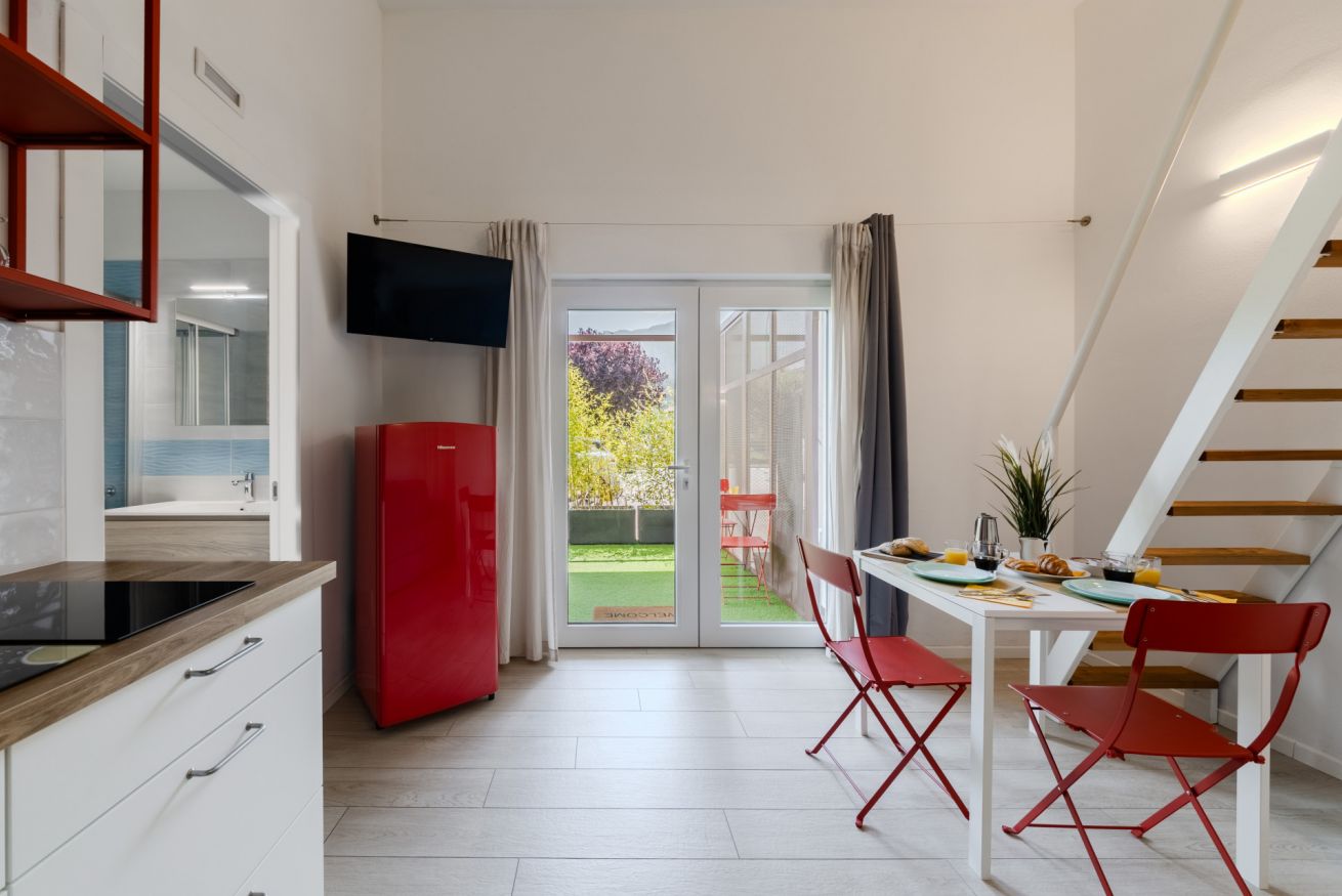 Monolocale accogliente con ingresso indipendente, letto matrimoniale, bagno privato e piccola cucina attrezzata. Si trova a Linfano, tra Arco e Torbole, a soli 300 m dal lago e a pochi minuti dal centro. Nelle vicinanze: ristoranti, pizzerie, supermercato e pista ciclabile. Dispone di parcheggio privato, spazio per biciclette e colonnina di ricarica per auto e bici.