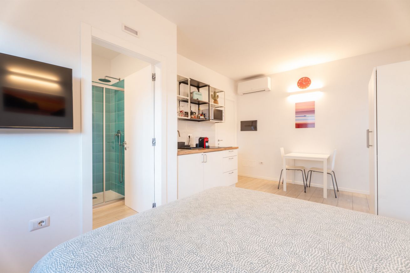 Monolocale accogliente con ingresso indipendente, letto matrimoniale, bagno privato e piccola cucina attrezzata. Si trova a Linfano, tra Arco e Torbole, a soli 300 m dal lago e a pochi minuti dal centro. Nelle vicinanze: ristoranti, pizzerie, supermercato e pista ciclabile. Dispone di parcheggio privato, spazio per biciclette e colonnina di ricarica per auto e bici.